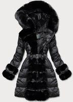 Długa damska kurtka zimowa z kapturem czarna (7688BIG)