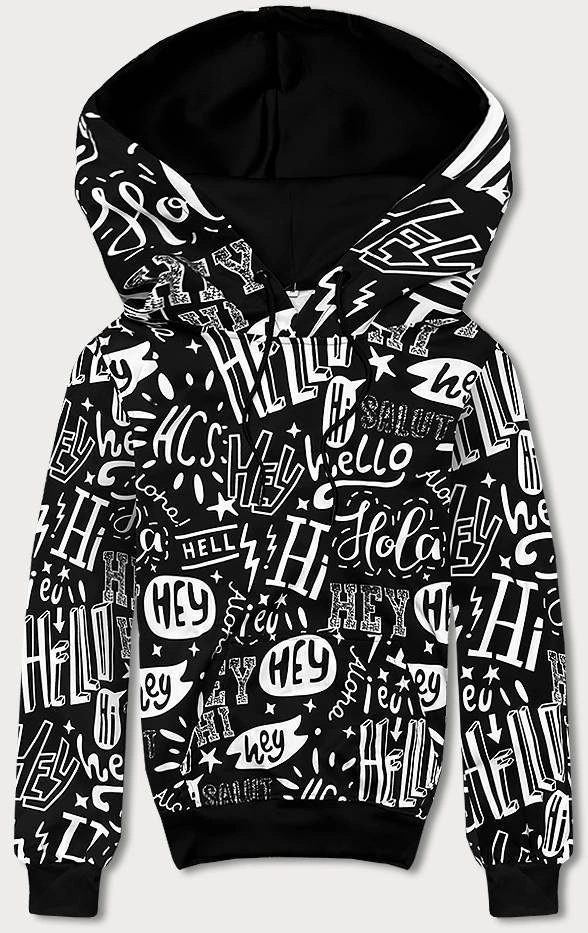 Męska bluza kangurka z nadrukiem czarna (8B1150-1)