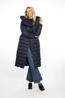 Pikowany płaszcz z wysoką stójką i kapturem granatowy (AG1-J9062C)