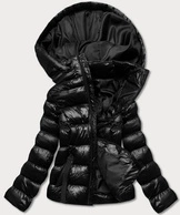 Puchowa kurtka ze stójką i kapturem czarna (ag2-j82)