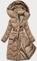 Zimowa kurtka damska do kolan beżowa (m-21601)