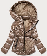 Metaliczna kurtka damska z kapturem jasny brąz (b8007-46)