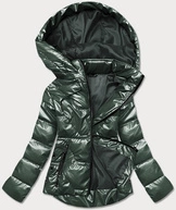 Metaliczna kurtka damska z kapturem zielona (b8007-10)