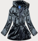 Błyszcząca kurtka damska ze ściągaczem czarna (LD7250BIG)