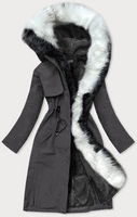 Długa zimowa damska parka bawełniana grafitowa (wm268)