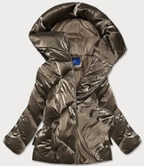 Błyszcząca kurtka zimowa na misiu khaki (w674)