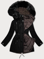 Dwustronna damska kurtka zimowa czarno-brązowa (w557)