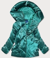 Metaliczna krótka zimowa kurtka damska puffer zielona (omdl-022)