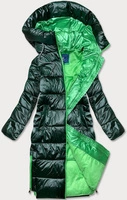 Długa zimowa kurtka damska z kontrastową podszewką zielona (j9-063)