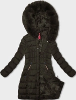 Zimowa kurtka damska z kapturem khaki (2M-21013)