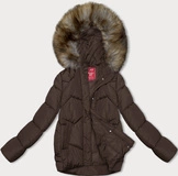Zimowa dwustronna kurtka damska z kapturem brąz-beż (B8203-14046)