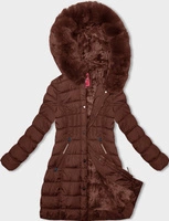 Zimowa kurtka damska z kapturem cegła (2M-21013)