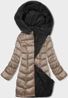 Zimowa dwustronna kurtka damska z kapturem brąz-beż (B8203-14046)