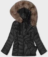 Zimowa kurtka damska z ozdobnym futrem czarna (5M3158-392)