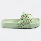 Damskie klapki plecione z łańcuszkiem zielone (ae120)