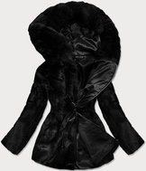 Damska kurtka futro z kapturem czarna (br9743-1)