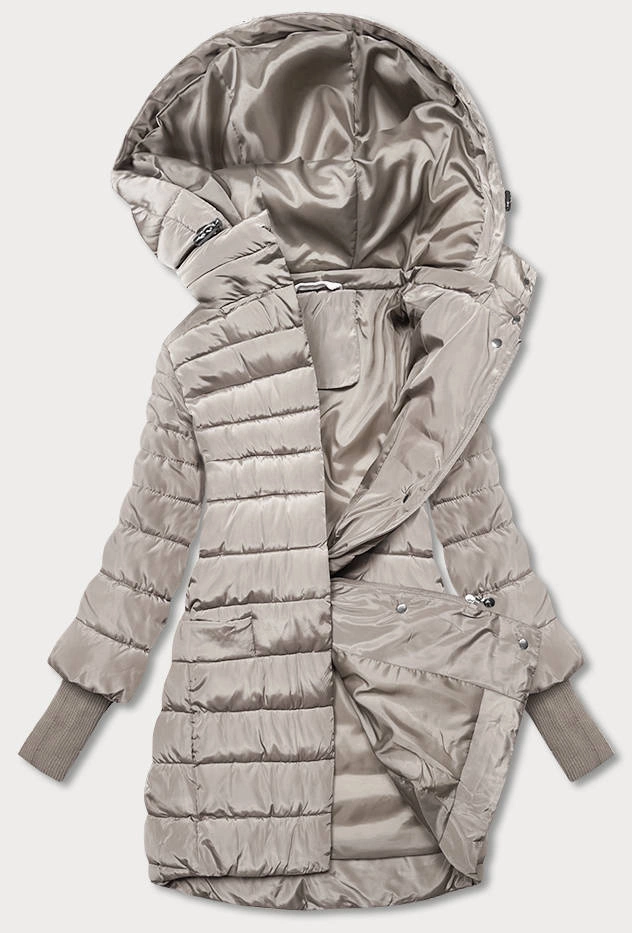 Asymetryczna kurtka damska z kapturem szara (pc-7510-61)