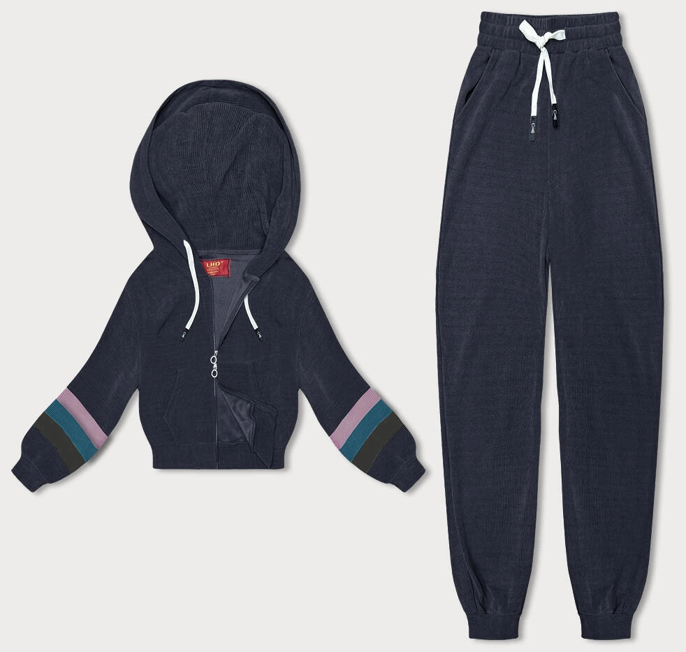 Komplet dresowy w prążki z ozdobnymi ściągaczami granatowy (AMG-345A)