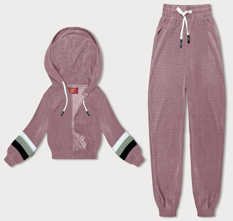 Komplet dresowy w prążki z ozdobnymi ściągaczami różowy (AMG-345A)