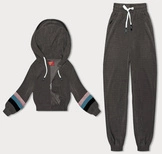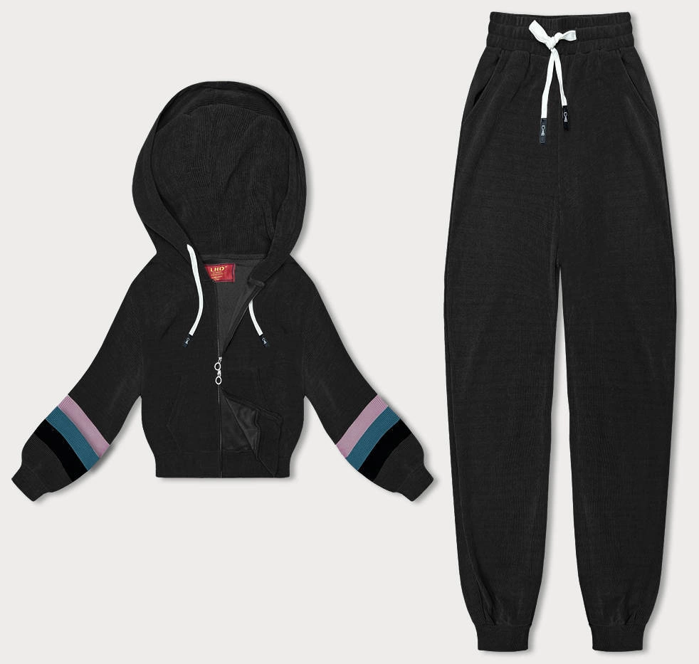 Komplet dresowy w prążki z ozdobnymi ściągaczami czarny (AMG-345A)