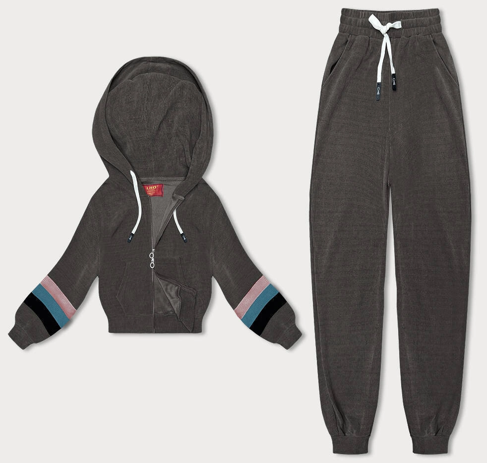 Komplet dresowy w prążki z ozdobnymi ściągaczami oliwkowy (AMG-345A)