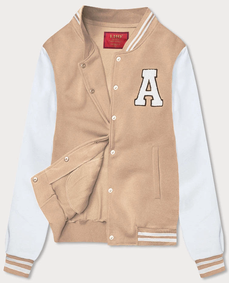 Damski płaszcz z łączonych materiałów beżowy (M206)