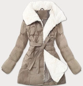 Zimowa damska kurtka z paskiem J Style jasny beżowy (5M3227-62)