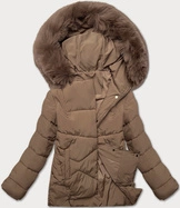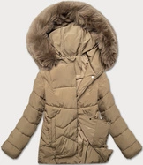 Damska kurtka zimowa z kapturem ciemny beż (5M3169-84)