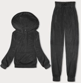 Welurowy dres damski z kapturem grafitowy (8C1175-6)