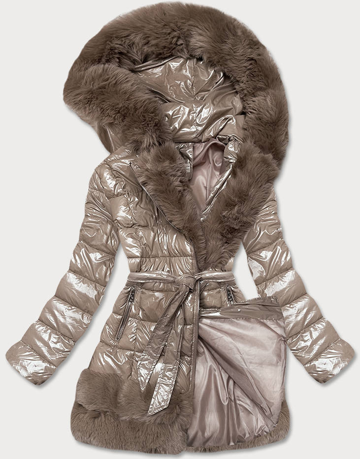 Pikowana kurtka zimowa na futrze Way Mode coffee-beż (WD202308)