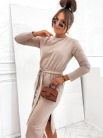 Sukienka midi z paskiem beżowa (773)