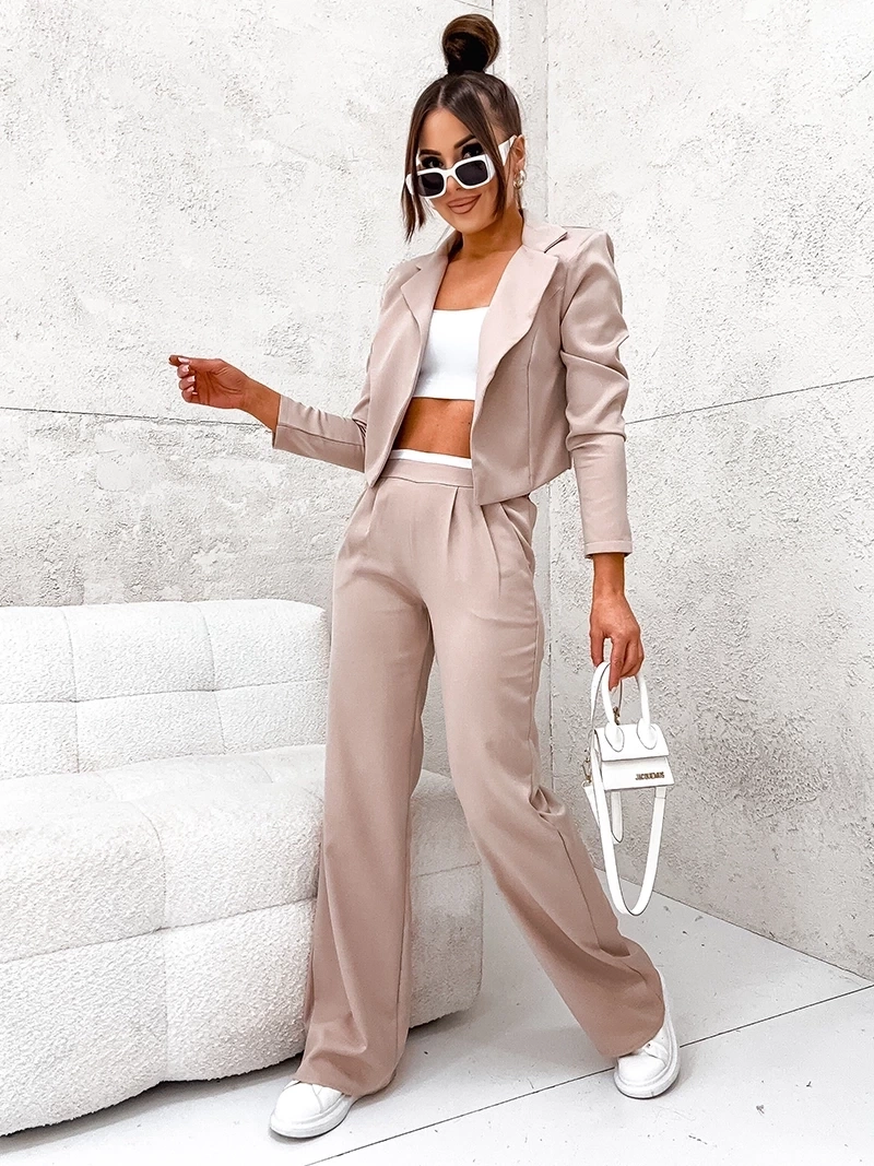 Komplet krótka marynarka + szerokie spodnie beżowy (8263)