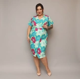 Kopertowa sukienka do kolan w kwiaty róż-zielony (742)