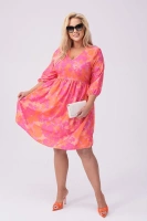 Letnia sukienka w kwiaty róż-pomarańcz (8276)