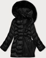Damska kurtka z odpinanym kapturem czarna (B8218-1)