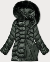 Damska kurtka z odpinanym kapturem ciemna zielona (B8218-10)