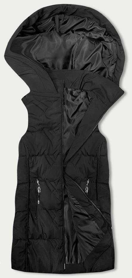 Pikowany bezrękawnik damski z kapturem czarny (can-562big)