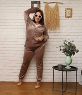 Dres damski z rozpinaną bluzą plus size mokka (8216)