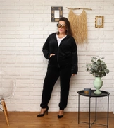 Dres damski z rozpinaną bluzą plus size czarny (8216)