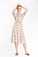 Sukienka w kratę z wiązanym dekoltem Ann Gissy biało-beżowa (XY202117)