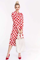 Sukienka w kratę z wiązanym dekoltem Ann Gissy biało-czerwona (XY202117)