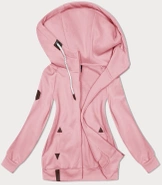 Trójkolorowa gruba bluza damska grafit-róż-szary (2303)