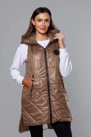 Puchowy bezrękawnik z odpinanym kapturem ciemny beż (B8247-101)
