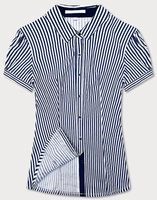 Damska koszula w paski z krótkim rękawem granatowo-biała (SSD2021D)