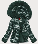 Krótka kurtka damska z futerkiem zielona (TY036-38)