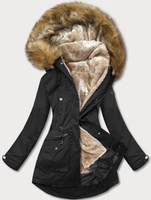 Zimowa kurtka damska do kolan czarna (m-21601)