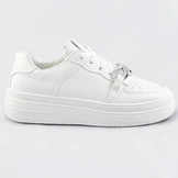 Sznurowane sneakersy z gwiazdką biały-srebrny (bb126l)