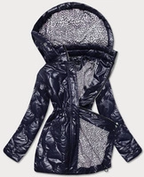 Zimowa kurtka damska z kapturem granatowa (can-579)