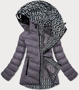 Metaliczna kurtka damska z kapturem czarna (w717)