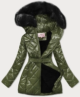 Błyszcząca kurtka zimowa na misiu khaki (w756)